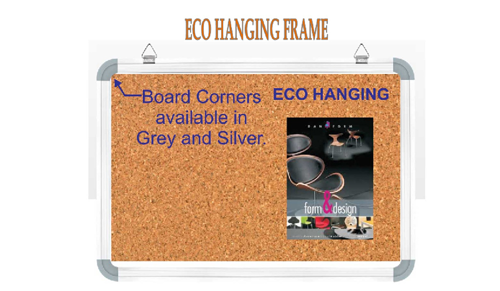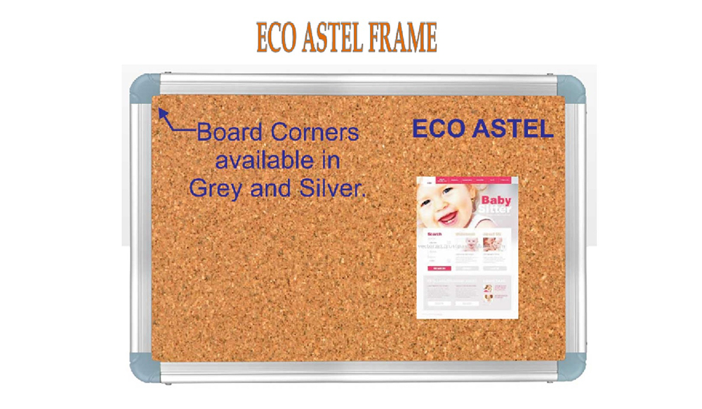 The surface is made from a 1 mm thick cork sheet pasted on a soft board, offering durability and ease for pinning notices securely.